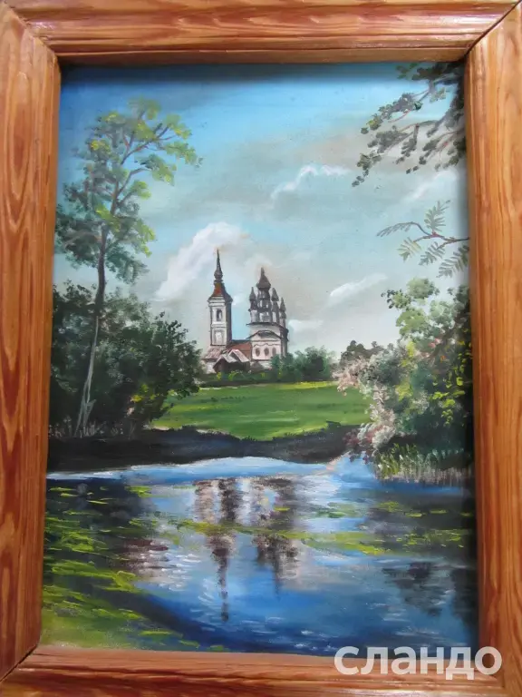 Картина в деревянной раме. Создаст успокаивающую атмосферу в том месте, где она будет находиться