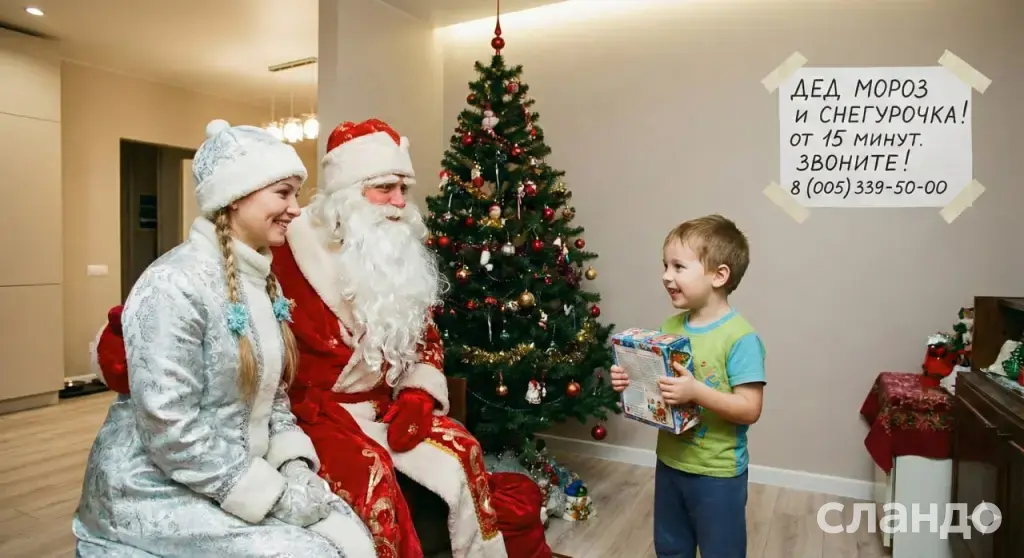 Профессиональные актеры: Опытные Дед Мороз и Снегурочка с яркими, реалистичными костюмами.