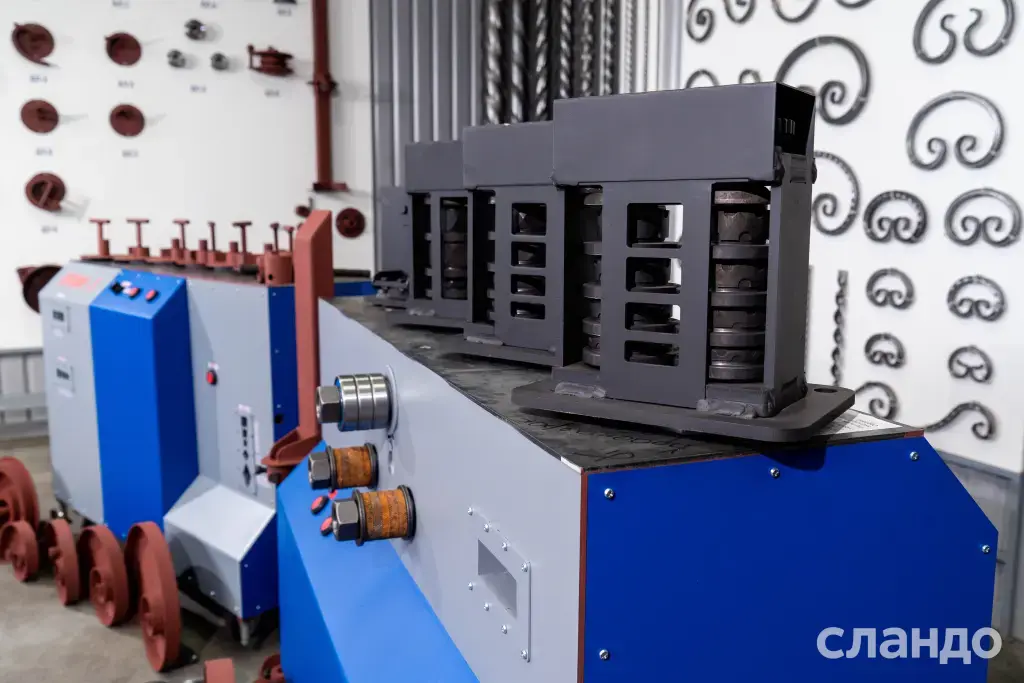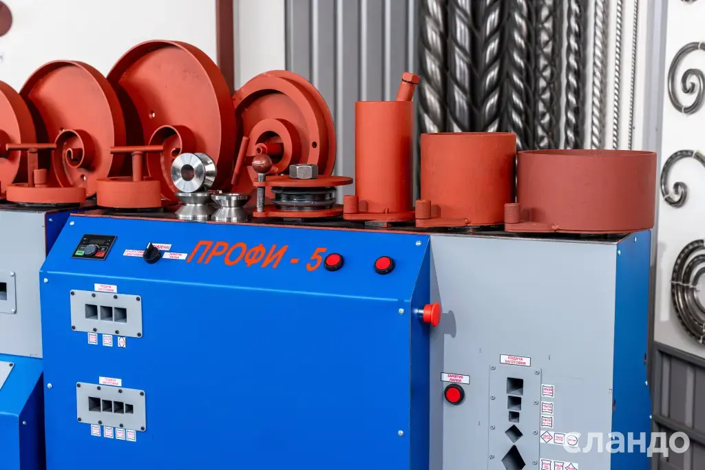 Станок «ПРОФИ-5»позволяет изготавливать широкую номенклатуру изделий художественного декора из металлопроката по технологии «холодной» и «горячей» ковки. Оборудование используются для изготовления: оград, лестниц, оконных решеток, ворот, декоративной продукции для сада и многого другого.